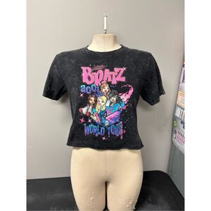 Vintage Bratz, 2001 world tour T-shirt for juniors and women size extra small cropped at the bottom super cute and would be great to pair with a mini skirt or some flare jeans for that Y2K inspired look
