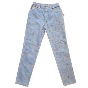 Vintage Braxton Jeans Women's 27 Blue Floral Print Slim Taper Mom 1990s