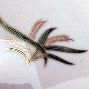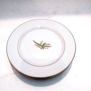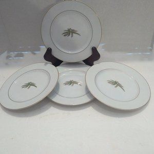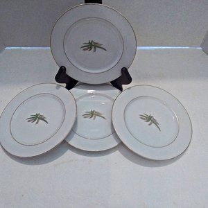 Listed for sale are Four (4) Bread and Butter Plates in Vintage Fukagama Arita Hand Painted Bone China. The center of the plates feature slender leaves and wheat stalks layered and trimmed in gold. The gold is in excellent condition with a rich and brilliant sheen. The Set is in excellent condition. These are superb antique items. Beautifully Crafted.