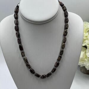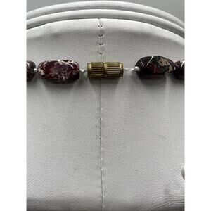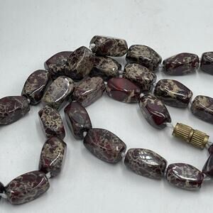 Vintage Brecciated Jasper Single Strand Hand Knotted Screw Clasp Necklace