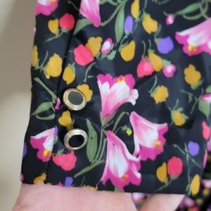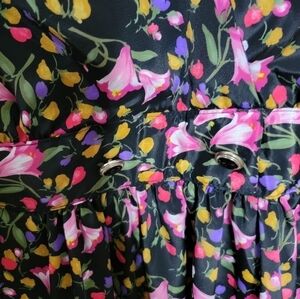 Beautiful black dress with a pink, yellow, purple, and green floral print.