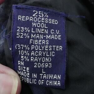Material: 25% reprocessed wool, 23% linen C.V., 52% man-made fibers (37% polyester, 10% acrylic, 5% rayon) per tag.
