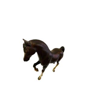 This Vintage Breyer Brown Horse Animal Figure is a nostalgic piece crafted from durable plastic. Its realistic detailing and brown color give a lifelike appearance. Perfect for collectors or horse enthusiasts.