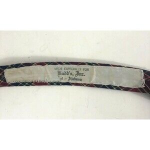 This listing is for a high-quality, vintage men's necktie featuring a classic tartan (plaid) pattern. The tie is made from All-Wool and was Woven in Scotland, as indicated on the label with the Union Jack. It is a product of the brand Briar, especially for Budd's Inc of -Alabama, a high end men's clothing store that is no longer open. This construction suggests a thick, rich texture perfect for fall and winter wear, or for a traditional British or Scottish look. The Classic Tartan / Plaid is dominantly Red/Burgundy, Navy Blue, and Dark Green, with fine white and yellow accent lines. There is not a keeper loop on this tie and no signs that there was one. The combination of wool, manufacture and Budd's Inc make this a very rare tie.