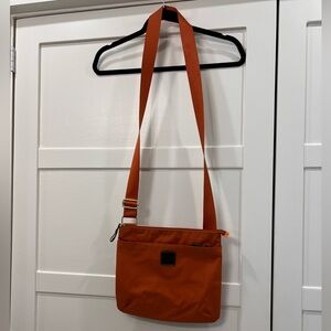 Super cute vintage Bric’s crossbody bag! Bright orange with gold and brown leather details. Great condition! One small scuff (pictured) on the back. Smoke-free home.