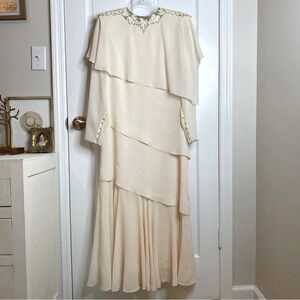 Vintage Bridal Ursula of Switzerland Tiered Cream Embellished Sequined S…