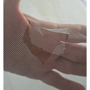 This hat is in very good condition however the veil has a 2" tear - see pictures. The hat is wide brimmed and features seed pearls and sequins and is more ivory in color than white. The veil measures 42" in length.