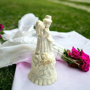 Vintage Bride And Groom Wedding Cake Topper Bell Center Piece Porcelain Bisque