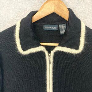 Vintage Bridgetown Wool Angora Zip Cardigan Sweater Medium Black Old Money Soft!