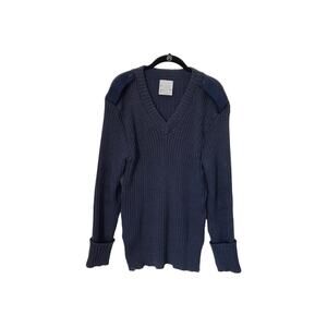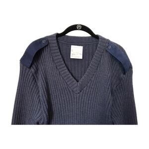 This vintage Brigade Quartermasters sweater is a must-have for any stylish man. Made of 100% pure new wool, this chunky-knit pullover is perfect for fall and winter seasons. The sweater features a classic V-neckline, long sleeves, and a solid blue color that will complement any outfit. Ideal for travel, casual outings, or workwear, this sweater is designed to fit regularly and has stretch features that ensure maximum comfort. The Woolly Pully sweater is a military-themed piece that comes in size L and is suitable for men of all ages. Get your hands on this Great Britain-made sweater today and enjoy the warmth and style it brings.
