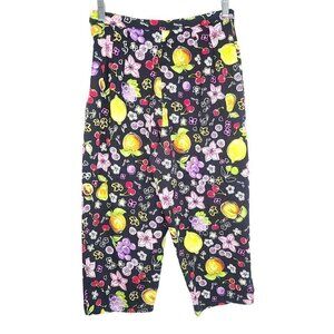 Vintage Briggs Black Peach Mango Summer Floral Pants