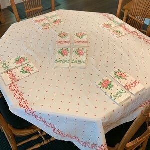 Vintage box 1 table cloth 4’X6’ and 12 dinner napkins 16”X17”