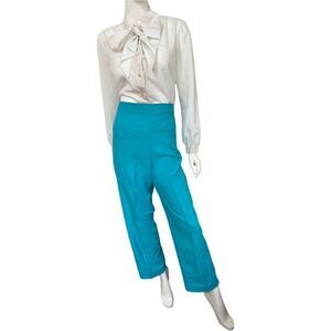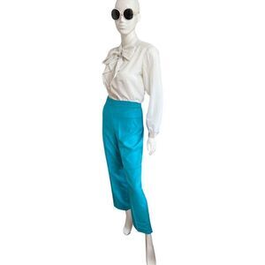 Vintage Bright Aqua Blue Pull On High Waisted Straight Leg Ankle Pants