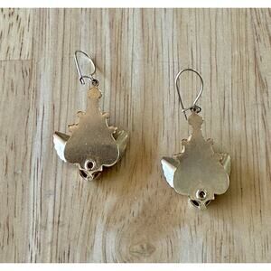 1-Vintage Bright Aqua Unfoiled Glass Dangle Flower/Leaf Shape Earrings w/Gold Tone accents