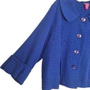 Features: Vintage large collar bright blue cape coat with purple buttons and pockets