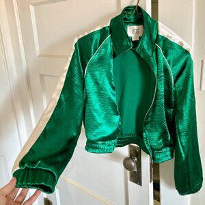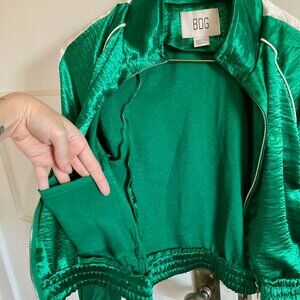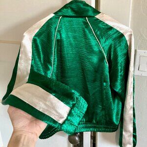 Vintage Bright Emerald Green BDG Urban Outfitters Satin Track Jacket, XS/XXS