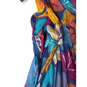 Vintage | Bright Floral V-Neck Sheer Dress | Size Small