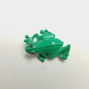 Vintage Bright Green Frog Brooch with Red Rhinestone Eyes, Amphibian Lapel Pin