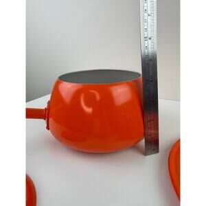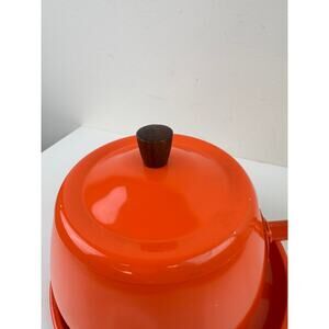 Vintage Bright Orange Fondue Pot Plate Combo Aluminum Wooden Handle with Lid