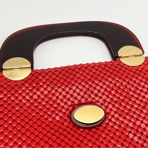 Vintage Bright Red Chainmail Big Lucite Handle Handbag