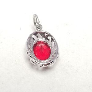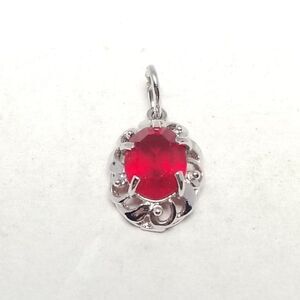 Vintage Bright Red Rhinestone Silver Tone Setting Pendant Charm, Birthstone