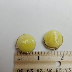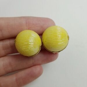 Vintage Bright Yellow Dome Clip On Earrings, Made in Austria, Retro 60s Style
