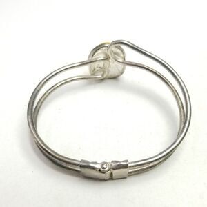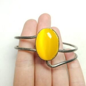 Vintage Bright Yellow Oval Cabochon Hinged Bangle Bracelet, Silver Tone Setting