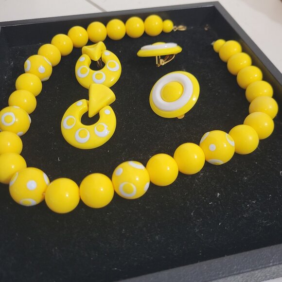 Super cool 60's yellow set Nice 18" necklace and two matching clip on earrings great condition