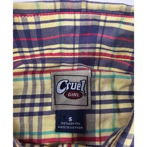 Vintage Bright plaid Cruel Girl Womens Western Button up sz S *STAIN*