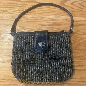 Vintage Brighton Black Tan Weave Straw Handbag Purse Tote Shoulder Bag Sadie?