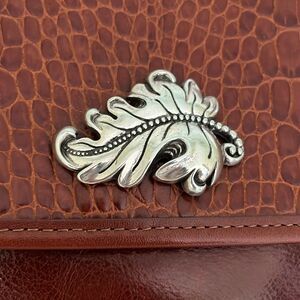 Vintage Brighton Brown Croc Embossed leather leaf Metal Details Crossbody Purse