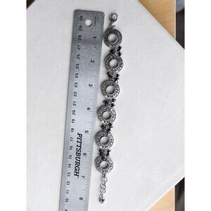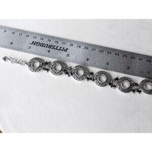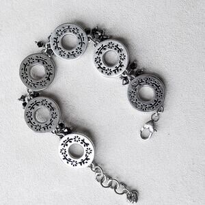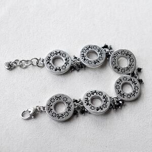 Vintage Brighton circle/disk link bracelet with black faceted dangle beads