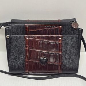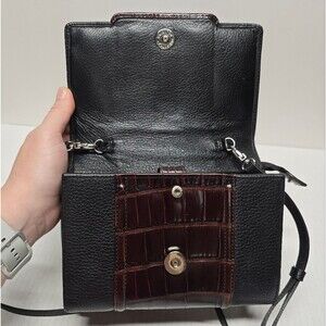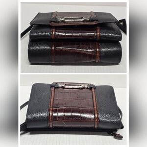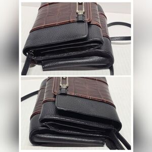 Vintage Brighton Crocodile Embossed Leather Black and Brown Colorblock Crossbody Multi Pocket Organizer Foldable Bag.