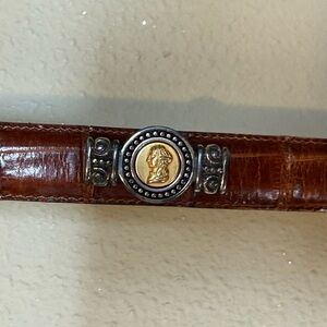 Vintage Brighton Museum Collection Womens Brown Leather Gold Coin Belt