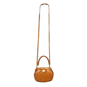 Vintage Brighton Norah Mini Crossbody Brown Leather Crocodile Embossed 2 Straps