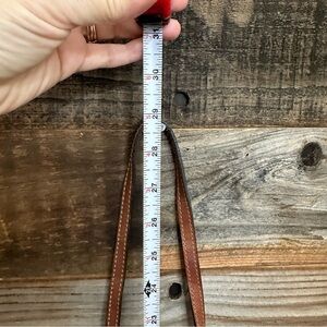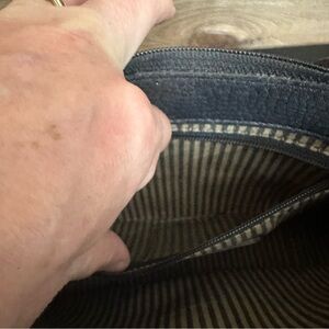 This woman’s Brighton, black and brown leather shoulder purse is in good preowned condition. There is visible discoloration of the brown leather trim on the bottom and top of the purse from prior use. There are a few small noted stains on the lining, but not super noticeable. Please see photos as they are part of the description, and show the wear and condition of the purse. Questions? Leave a comment below!