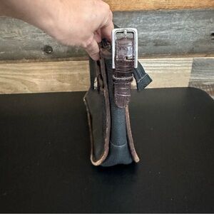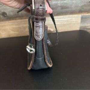 Vintage Brighton Pebble Grain Leather Black w/Brown Alligator Embossed Purse