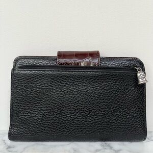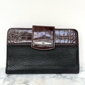 Vintage Brighton Pebbled Leather Croc Embossed Bi-Fold Checkbook Wallet Brown Black