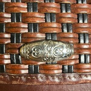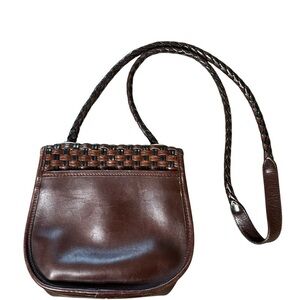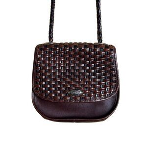 Vintage Brighton Purse Brown Leather Weaved Crossbody Shoulder Handbag Classic