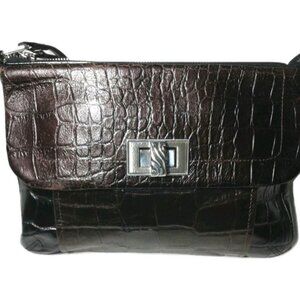 Vintage Brighton Shoulder Bag Classic Flap Handbag Croco Embossed Accents