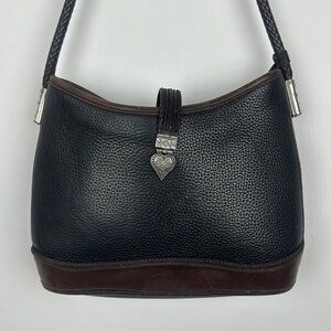 Silver hardware is in good condition with a few scratches, Brighton bag charm included