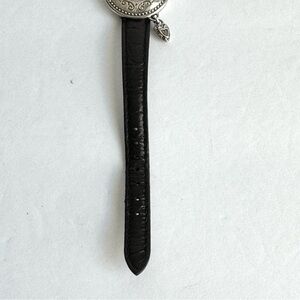 Vintage Brighton Watch Silver Tone Black Leather Band Western Swirl Heart Charm