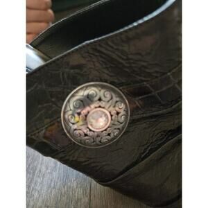 Keywords: Brighton, slip-on flats, black flats, women's shoes, vintage style, casual wear, elegant design, detailed embellishments, closed-toe, all seasons, medium width, classic theme, pre-owned.