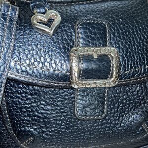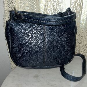 Vintage Brighton classic navy blue leather pebble satchel crossbody bag