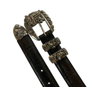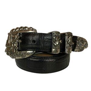 Vintage Brighton for Disney Black Textured Leather Belt Character Buckle Size 32