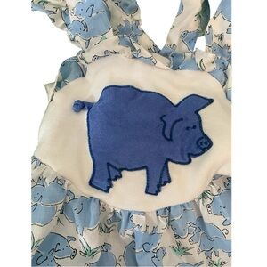 Vintage Brights Creek Blue Pig Print Baby Farm Outfit Romper- Size 12M 🐷 💙