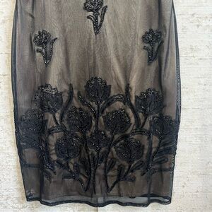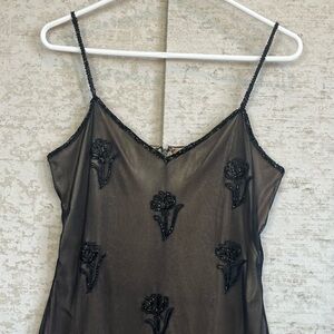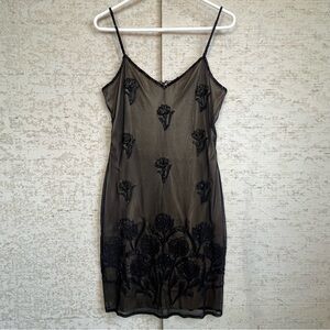 Vintage Brilliant Black Beaded Sheer Floral Slip Dress Sz M Fairycore Whimsigoth