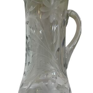 Antique Brilliant Heavy Cut Glass Crystal Clear Water Juice Pitcher With Handle