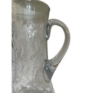 Vintage Brilliant Heavy Cut Glass Crystal Clear Water Juice Pitcher With Handle