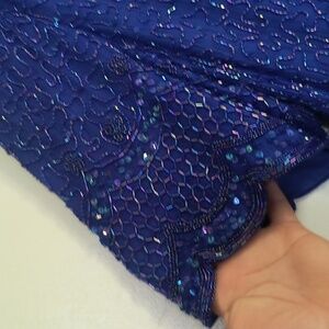 Vintage Brilliante By J.A. Elegant Blue Silk Sequin Beaded Evening Gown Sz 2X